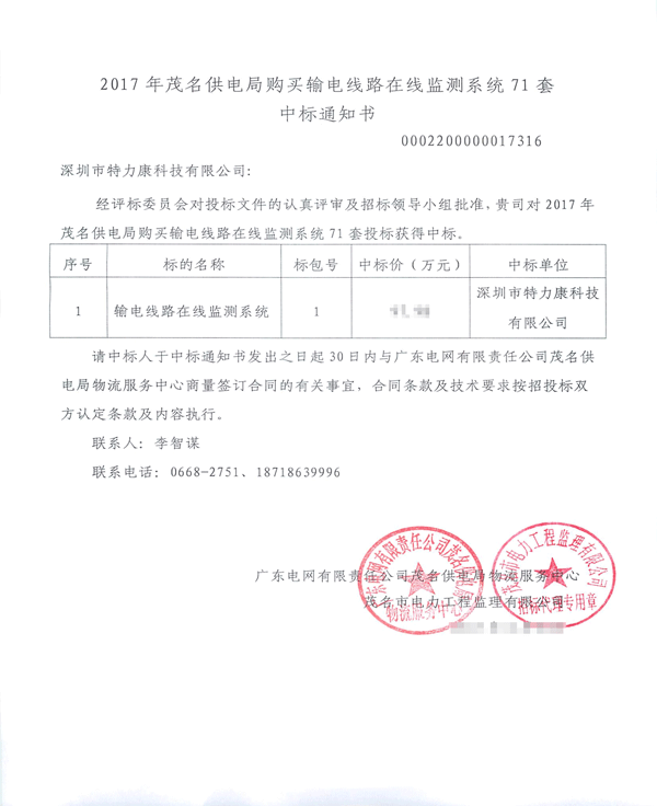 特力康中標(biāo)國網(wǎng)黑龍江送變電工程公司的2024年度第18次物資類競(jìng)爭(zhēng)性談判采購項(xiàng)目——慶陽驅(qū)鳥器物資框 特力康中標(biāo)國網(wǎng)甘肅省電力公司省管產(chǎn)業(yè)單位2024年第五次物資競(jìng)爭(zhēng)性談判授權(quán)采購項(xiàng)目 中標(biāo)喜訊:深圳市特力康科技有限公司成功入圍許繼集團(tuán)綜合能源公司輸電線路視頻在線監(jiān)測(cè)裝置模塊集采項(xiàng)目 中標(biāo)喜訊:特力康成功中標(biāo)國網(wǎng)重慶市電力公司渝中一片區(qū)項(xiàng)目 特力康成功中標(biāo)國網(wǎng)天津市電力公司2024年第二次?物?資招標(biāo)項(xiàng)目 特力康中標(biāo)國網(wǎng)安徽省電力有限公司蕪湖供電公司2024年3月非物質(zhì)采購項(xiàng)目 戈壁林區(qū)的 “火情哨兵”:特力康紅外熱成像裝置守護(hù)甘肅輸電線路 內(nèi)蒙電網(wǎng)裝上 “舞動(dòng)監(jiān)測(cè)眼”:特力康輸電線路防舞動(dòng)監(jiān)測(cè)系統(tǒng)守護(hù)線路安全 浙江電力裝上“氣象哨兵”:特力康裝置守護(hù)電網(wǎng)應(yīng)對(duì)臺(tái)風(fēng)暴雨 蜀道巡線不用“爬”:特力康視頻在線監(jiān)測(cè)裝置守護(hù)四川輸電鐵塔 風(fēng)雪中的 “防冰哨兵”:內(nèi)蒙古電力用特力康監(jiān)測(cè)系統(tǒng)筑牢覆冰防線 雙軸感知護(hù)塔穩(wěn):山西電力用特力康裝置破解采空區(qū)傾斜難題 江西電力裝上 “智能防鳥衛(wèi)士”—— 特力康綜合激光驅(qū)鳥器破解湖區(qū)變電站鳥害難題 破解巡檢難題:貴州電力用特力康 AI 微拍裝置,精準(zhǔn)捕捉線路隱性隱患 精準(zhǔn)捕捉 “微氣象”:浙江電力用特力康預(yù)警系統(tǒng)筑牢電網(wǎng)氣候防線 守護(hù) “電力咽喉”:湖南電力投用百套特力康三跨 4G 監(jiān)控球,筑牢安全防線 貴州電力裝特力康電網(wǎng)架空線路覆冰監(jiān)測(cè)系統(tǒng),精準(zhǔn)防冰保電網(wǎng)過冬? 寧夏配電線路安裝了我司防外破電子化智能警示牌