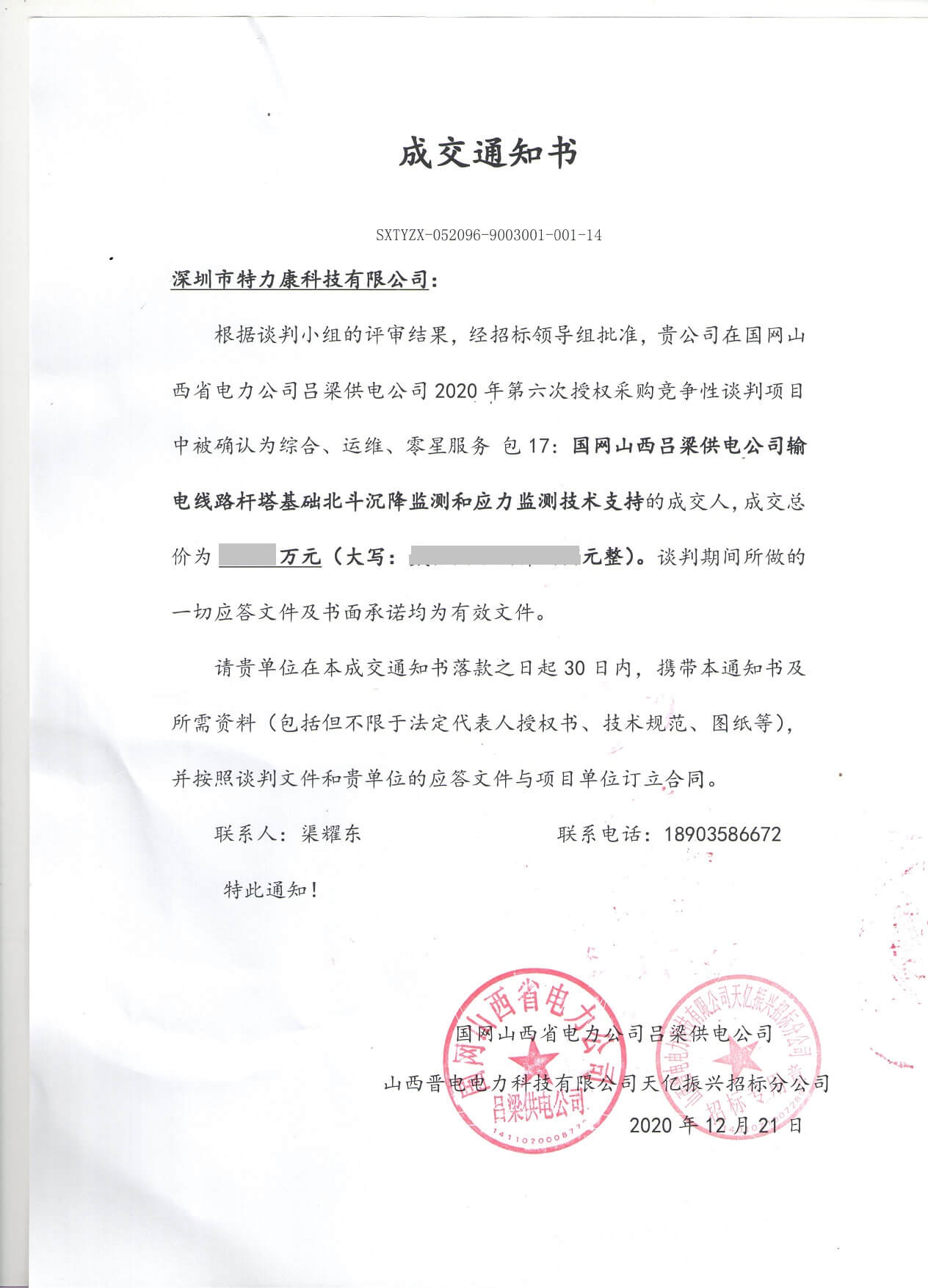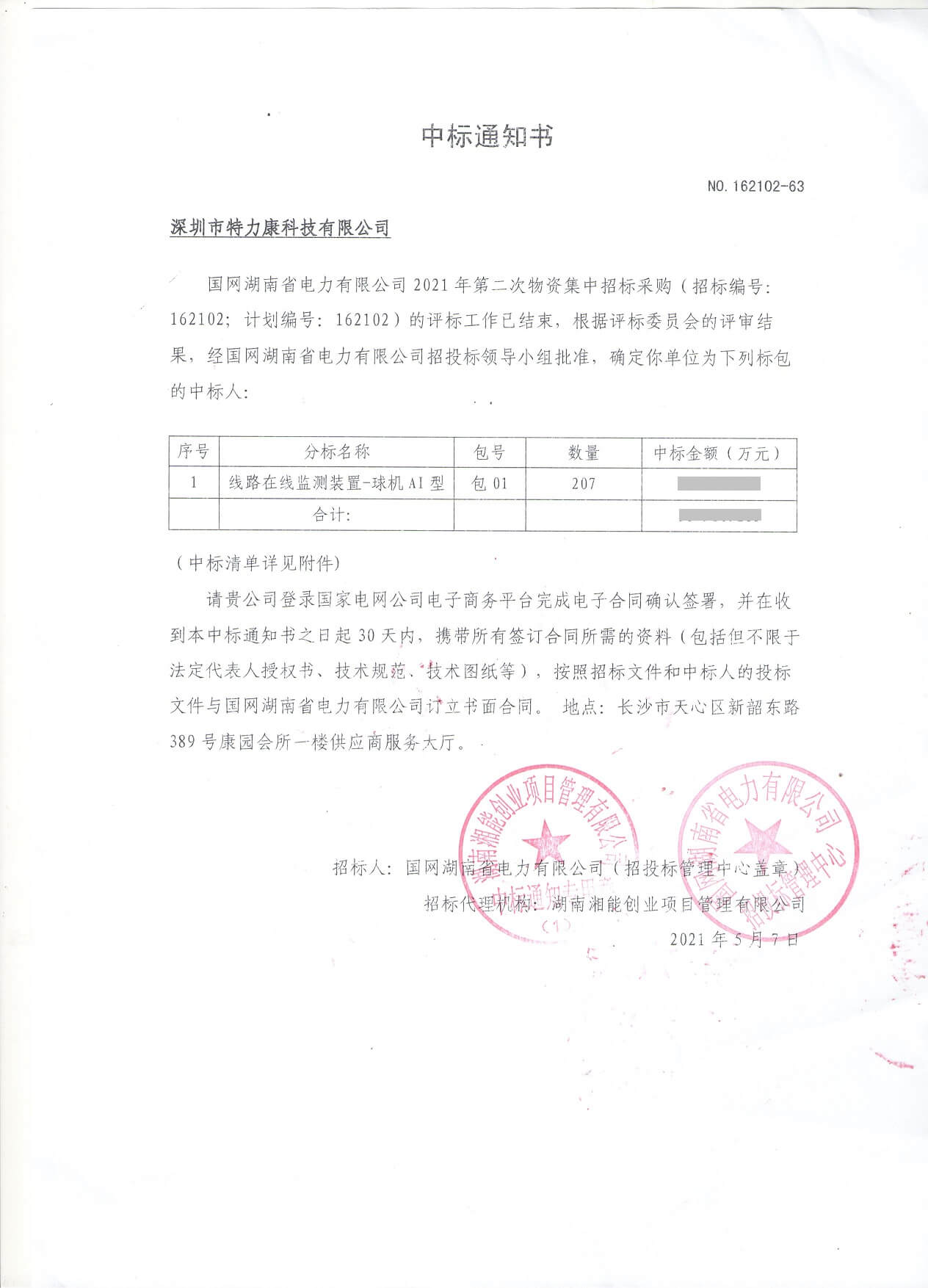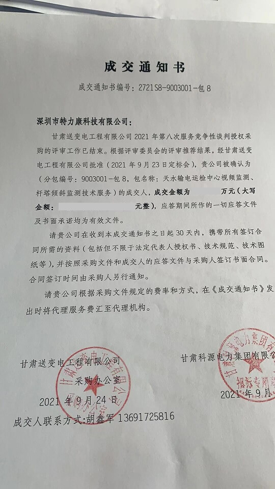 特力康中標國網(wǎng)黑龍江送變電工程公司的2024年度第18次物資類競爭性談判采購項目——慶陽驅(qū)鳥器物資框 特力康中標國網(wǎng)甘肅省電力公司省管產(chǎn)業(yè)單位2024年第五次物資競爭性談判授權(quán)采購項目 中標喜訊:深圳市特力康科技有限公司成功入圍許繼集團綜合能源公司輸電線路視頻在線監(jiān)測裝置模塊集采項目 中標喜訊:特力康成功中標國網(wǎng)重慶市電力公司渝中一片區(qū)項目 特力康成功中標國網(wǎng)天津市電力公司2024年第二次?物?資招標項目 特力康中標國網(wǎng)安徽省電力有限公司蕪湖供電公司2024年3月非物質(zhì)采購項目 戈壁林區(qū)的 “火情哨兵”:特力康紅外熱成像裝置守護甘肅輸電線路 內(nèi)蒙電網(wǎng)裝上 “舞動監(jiān)測眼”:特力康輸電線路防舞動監(jiān)測系統(tǒng)守護線路安全 浙江電力裝上“氣象哨兵”:特力康裝置守護電網(wǎng)應(yīng)對臺風(fēng)暴雨 蜀道巡線不用“爬”:特力康視頻在線監(jiān)測裝置守護四川輸電鐵塔 風(fēng)雪中的 “防冰哨兵”:內(nèi)蒙古電力用特力康監(jiān)測系統(tǒng)筑牢覆冰防線 雙軸感知護塔穩(wěn):山西電力用特力康裝置破解采空區(qū)傾斜難題 江西電力裝上 “智能防鳥衛(wèi)士”—— 特力康綜合激光驅(qū)鳥器破解湖區(qū)變電站鳥害難題 破解巡檢難題:貴州電力用特力康 AI 微拍裝置,精準捕捉線路隱性隱患 精準捕捉 “微氣象”:浙江電力用特力康預(yù)警系統(tǒng)筑牢電網(wǎng)氣候防線 守護 “電力咽喉”:湖南電力投用百套特力康三跨 4G 監(jiān)控球,筑牢安全防線 貴州電力裝特力康電網(wǎng)架空線路覆冰監(jiān)測系統(tǒng),精準防冰保電網(wǎng)過冬? 寧夏配電線路安裝了我司防外破電子化智能警示牌